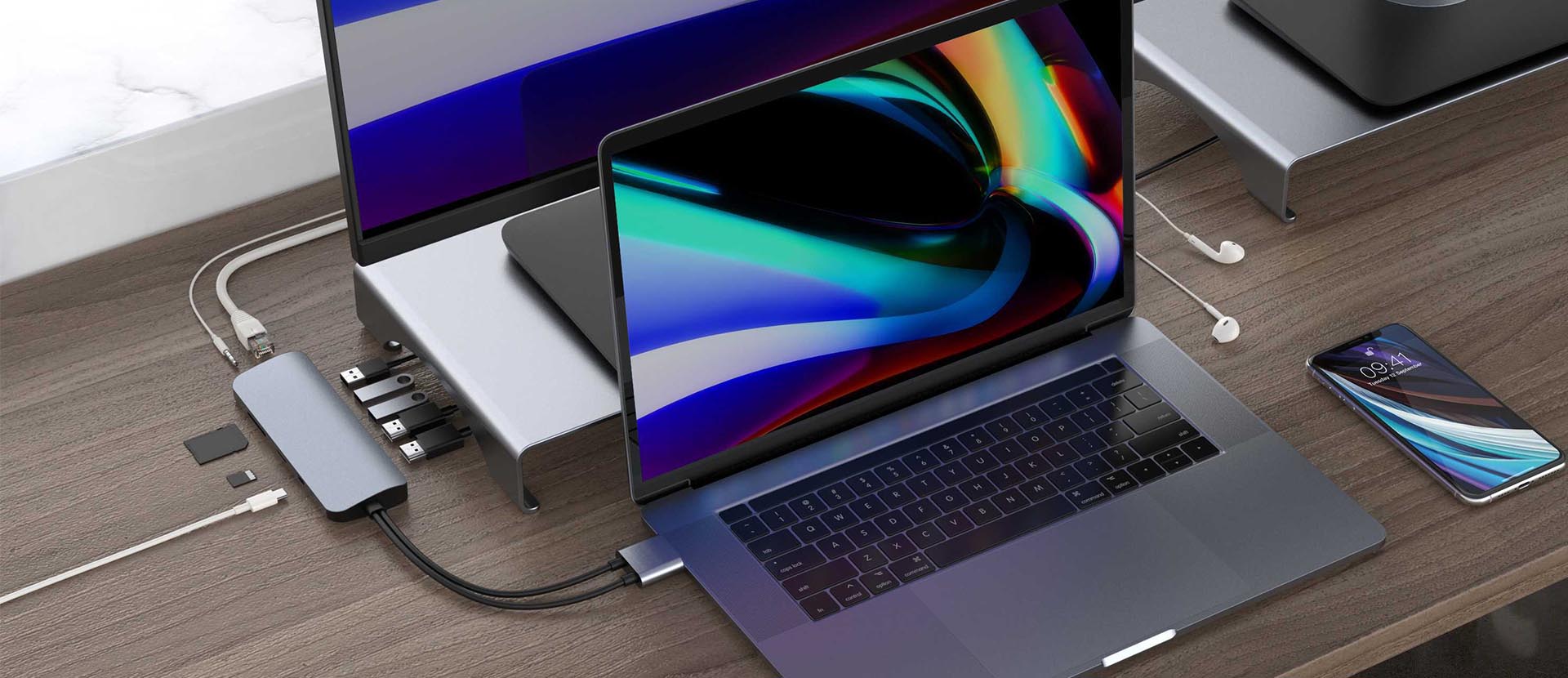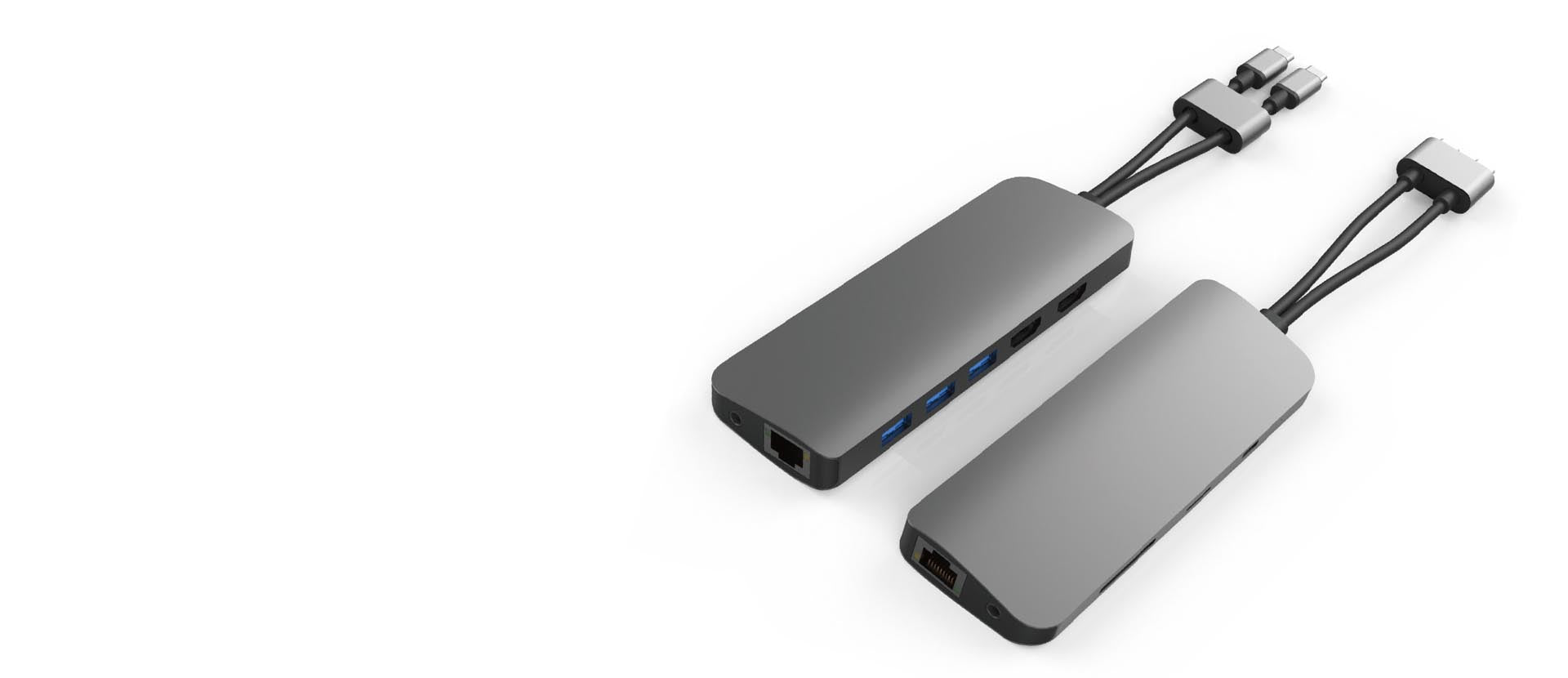 Universal USB-C hub for MacBook, Chromebook, and PC. This USB-C adapter adds 10 ports: dual 4K 60Hz HDMI output, USB-C power delivery, gigabit ethernet adapter, and more.